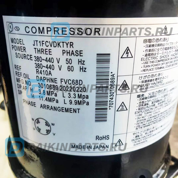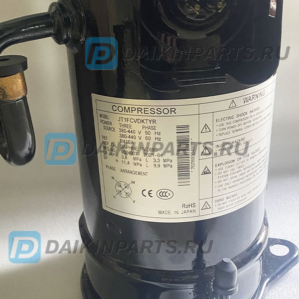 Оригинальный Компрессор Daikin JT1FCVDKTYR (1829545, 142431J). Официальная поставка с гарантией от нашего сервисного центра. При необходимости будет проведена полная комплектация поставки всем необходимым для восстановления работы системы кондиционирования: масло для замены компрессора, элементы креплений, электронные платы, датчики.